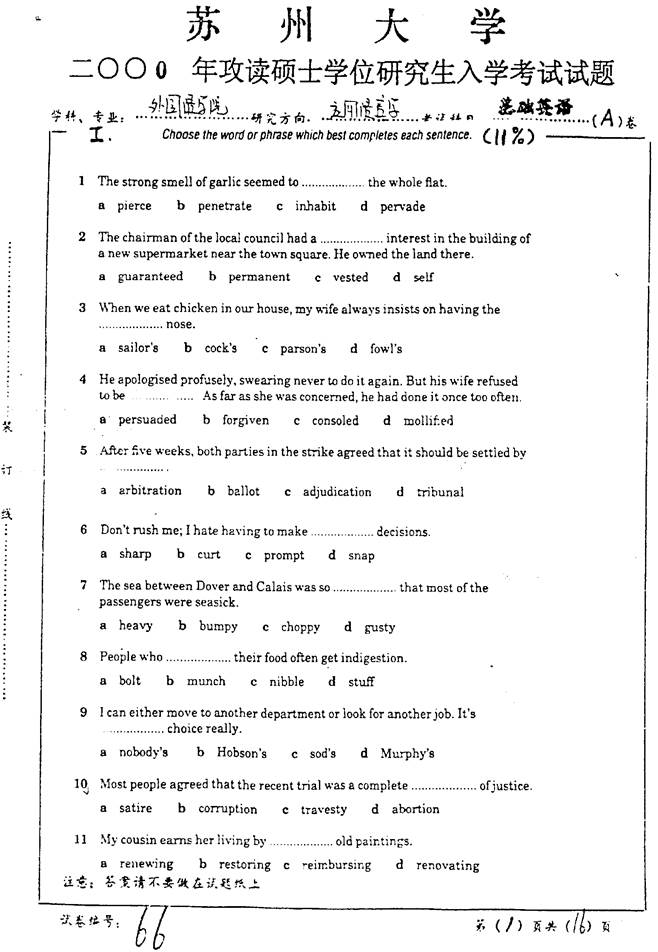 1. [电子书]苏州大学外国语学院《615基础英语》历年考研真题汇总