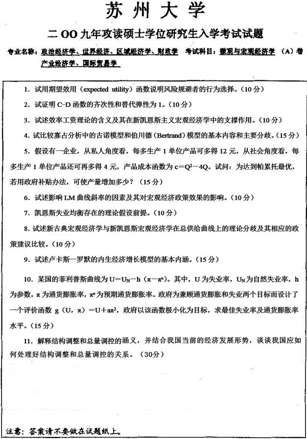 2009年苏州大学《807微观与宏观经济学》考研真题