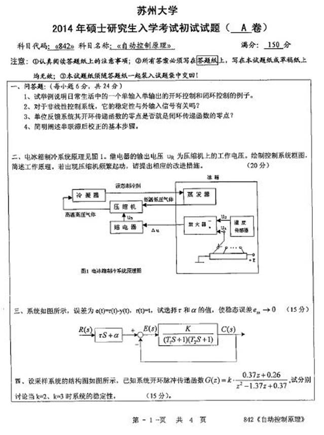 1. 苏州大学《842自动控制原理》历年考研真题汇总