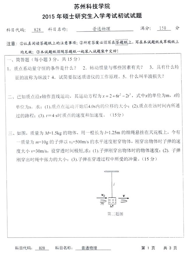 1. 苏州科技大学物理科学与技术学院《普通物理》历年考研真题汇总