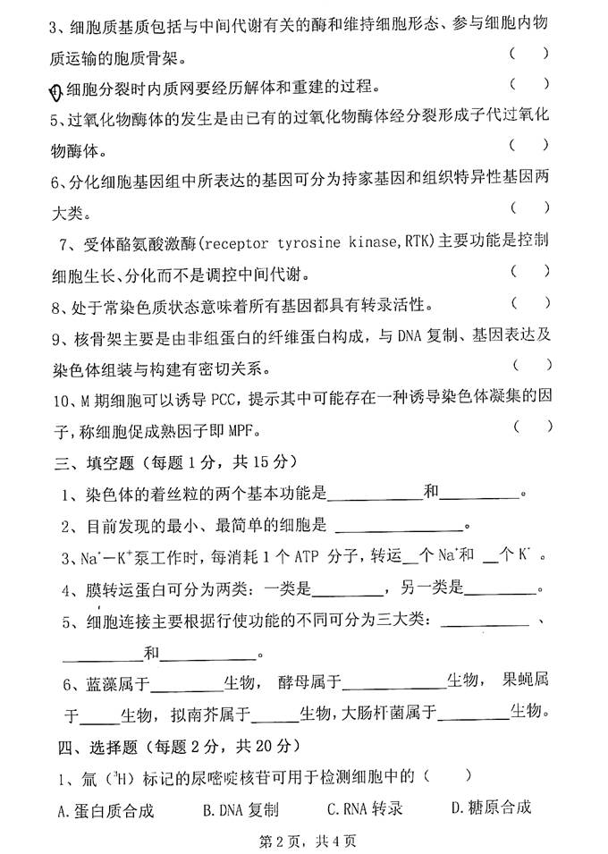 第二部分 兄弟院校细胞生物学考研真题