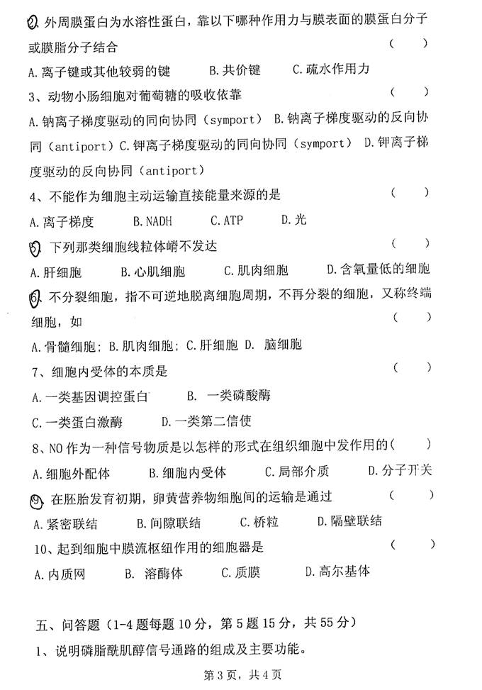 2. 全国名校细胞生物学考研真题汇总(含部分答案)