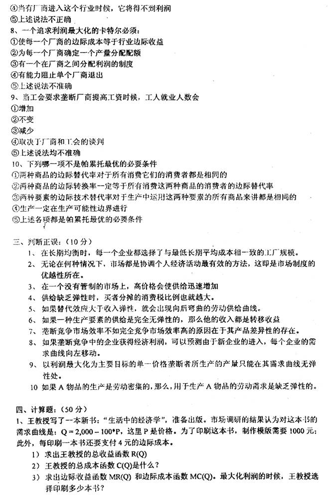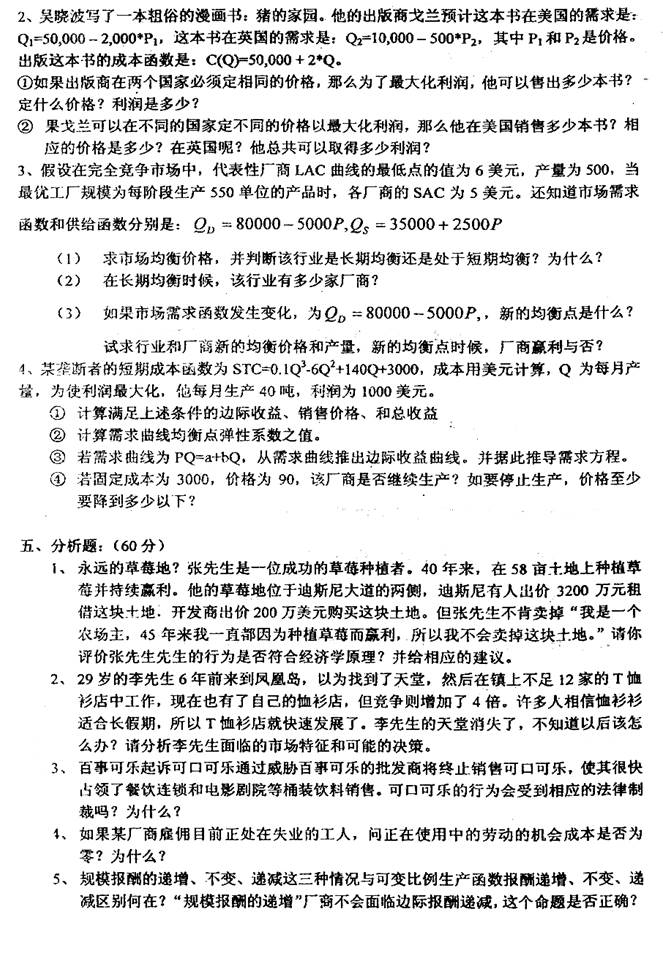 2. 全国名校微观经济学考研真题及详解(适用于考卷中仅含微观经济学的名校)