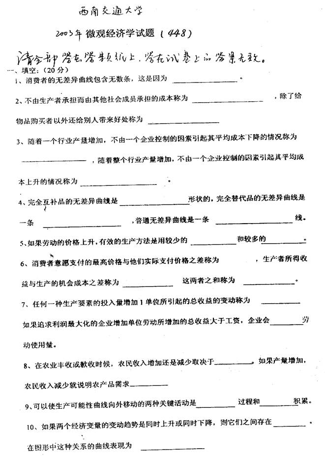 1. 西南交通大学经济管理学院《925微观经济学》历年考研真题汇总