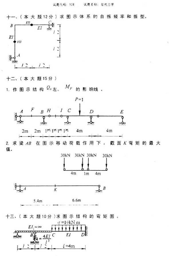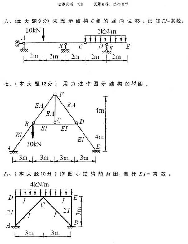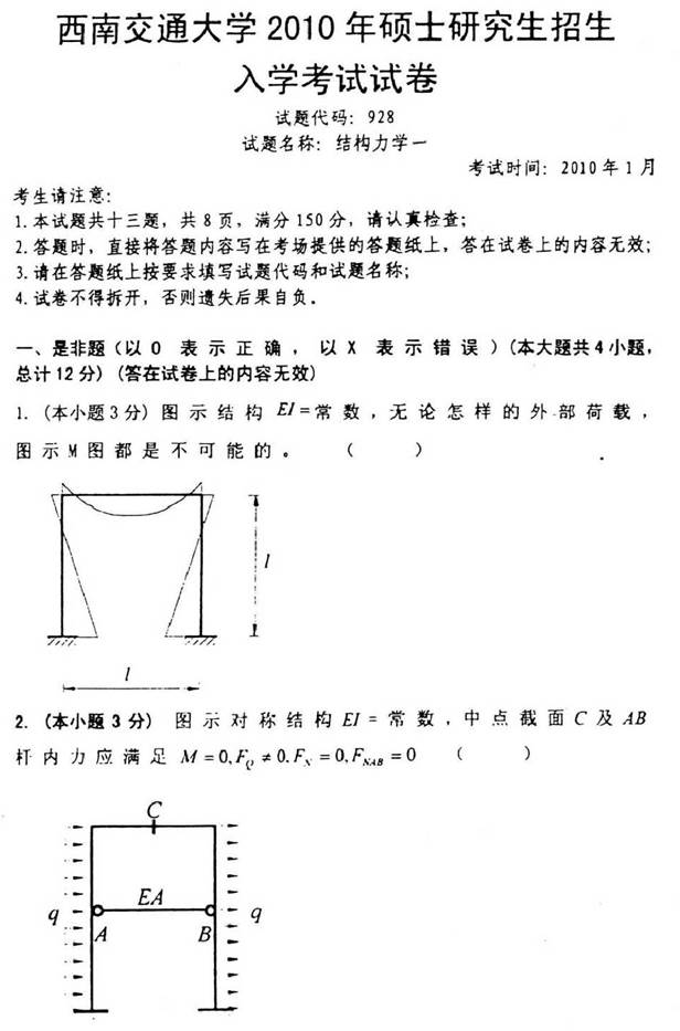 1. 西南交通大学土木工程学院《928结构力学》历年考研真题汇总
