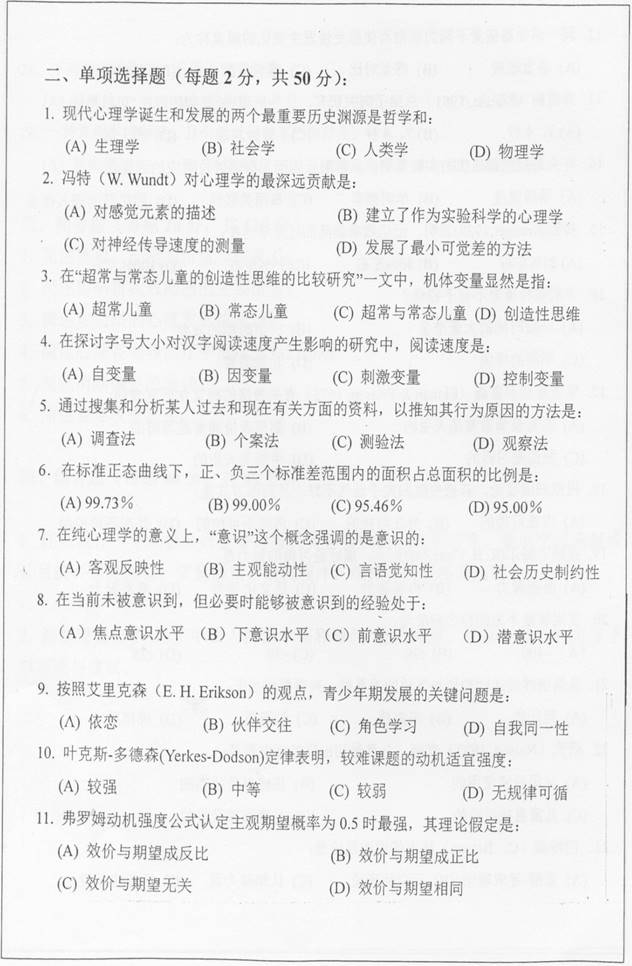 2011年西南大学《347心理学专业综合》考研真题及详解