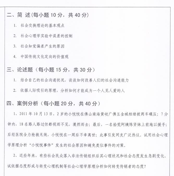 2006年西南大学476社会心理学考研真题