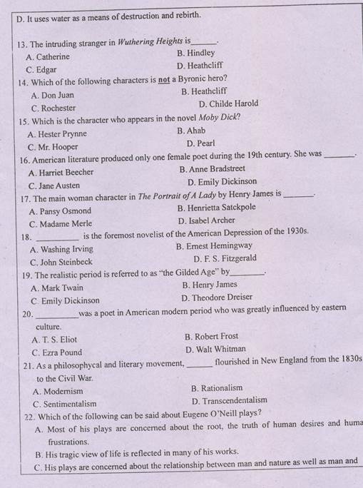 1. 吴伟仁《美国文学史及选读》(重排版)笔记和考研真题
