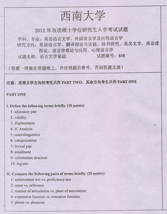 1. 西南大学外国语学院《848语言文学基础》历年考研真题汇总