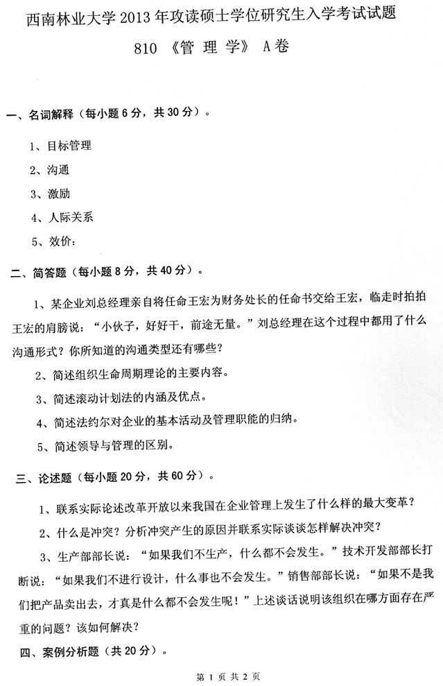 2013年西南林业大学810管理学考研真题