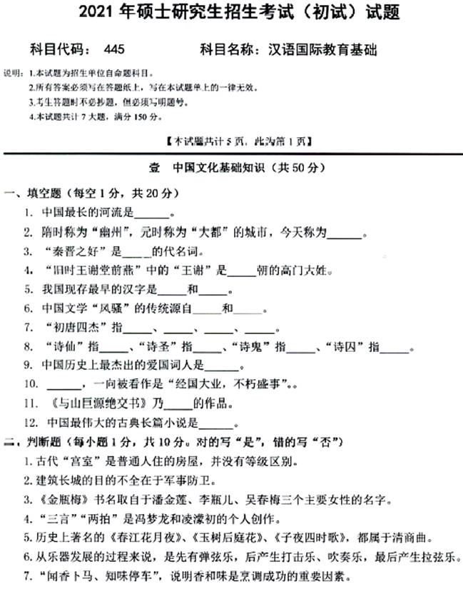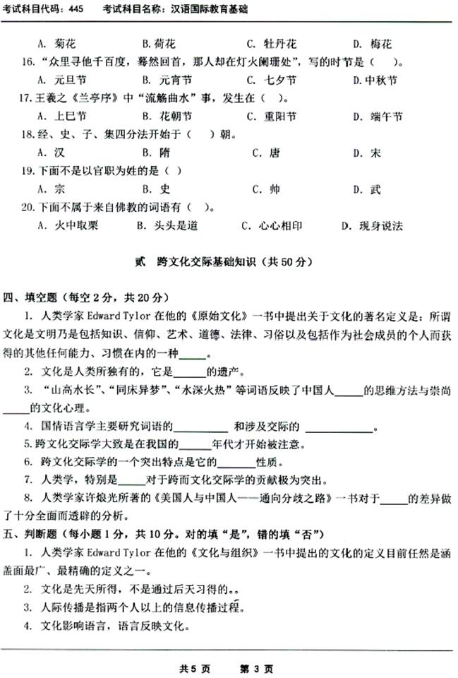 3. 汉语国际教育硕士《445汉语国际教育基础》名校考研真题