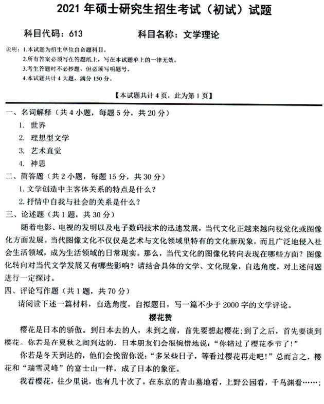 1. 西南科技大学文学与艺术学院《613文学理论》历年考研真题汇总