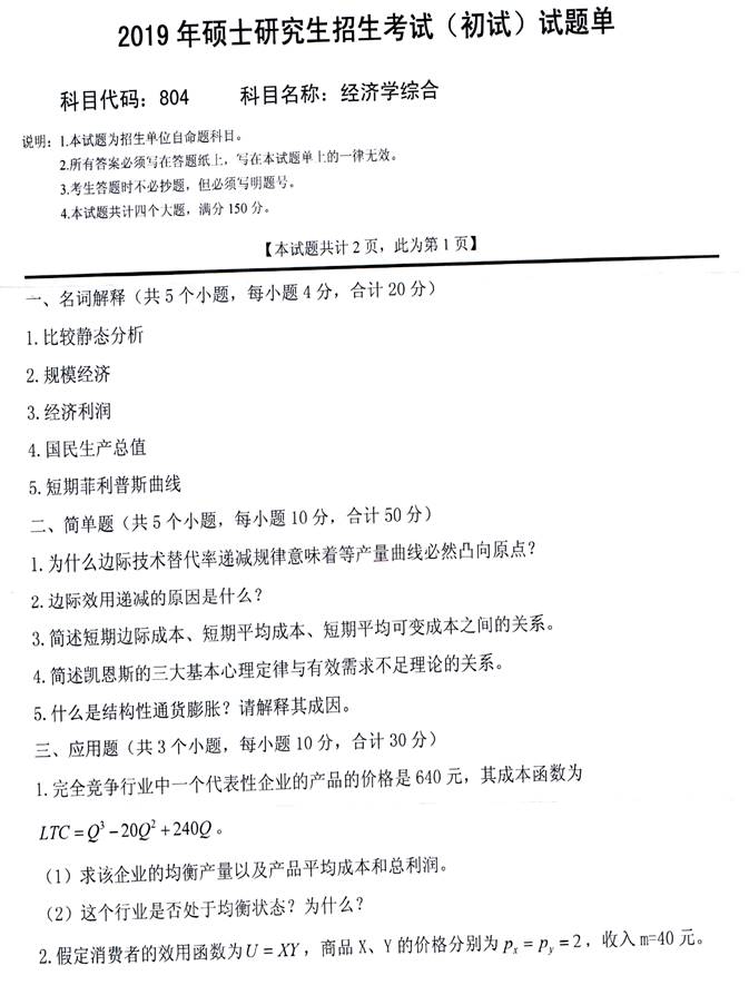 2. 全国名校经济学考研试卷分析及真题(含北大清华人大复旦等名校)