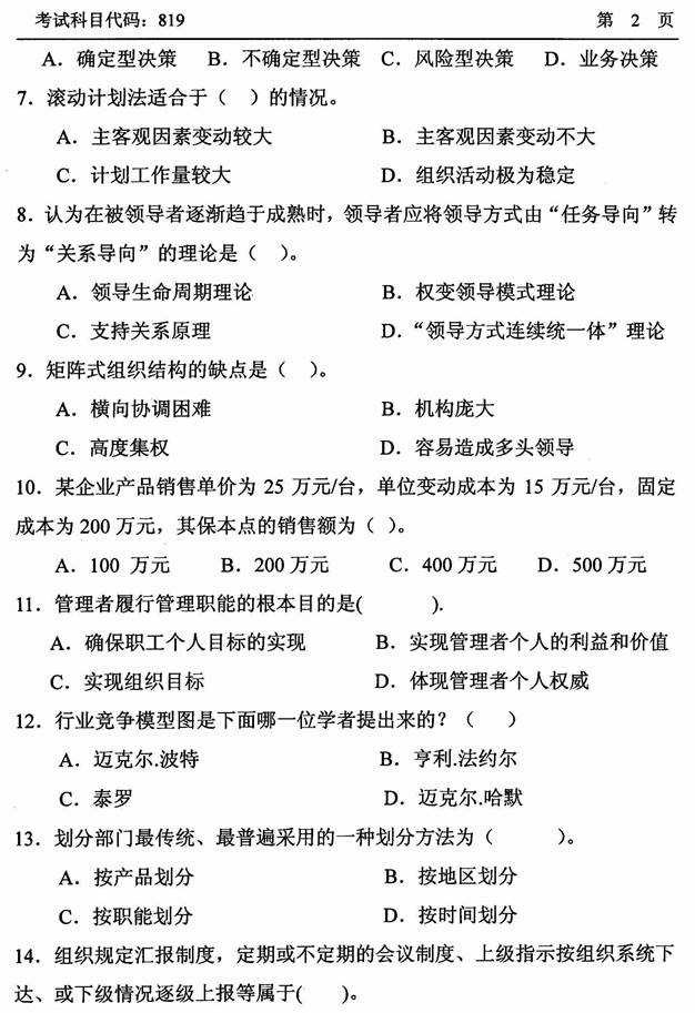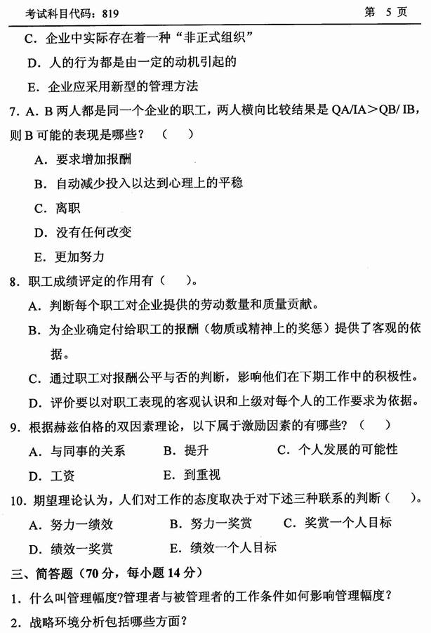 1. [电子书]西南科技大学经济管理学院《827管理学》历年考研真题汇总
