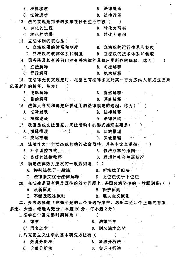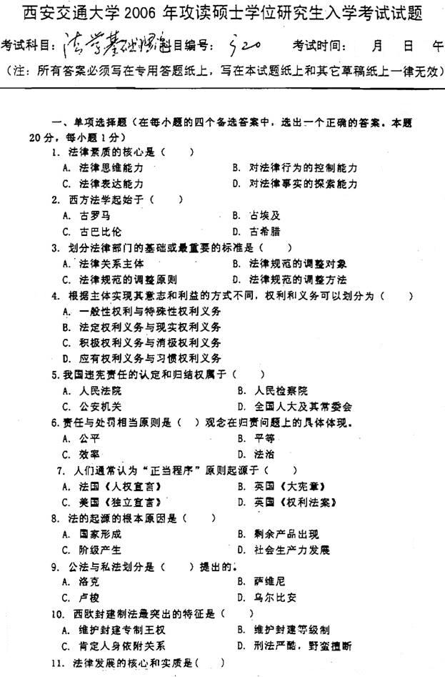1. 西安交通大学法学院《704法学基础理论》历年考研真题汇总