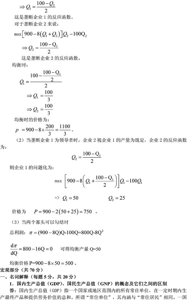 2. 全国名校经济学考研试卷分析及真题详解(含北大清华人大复旦等名校)