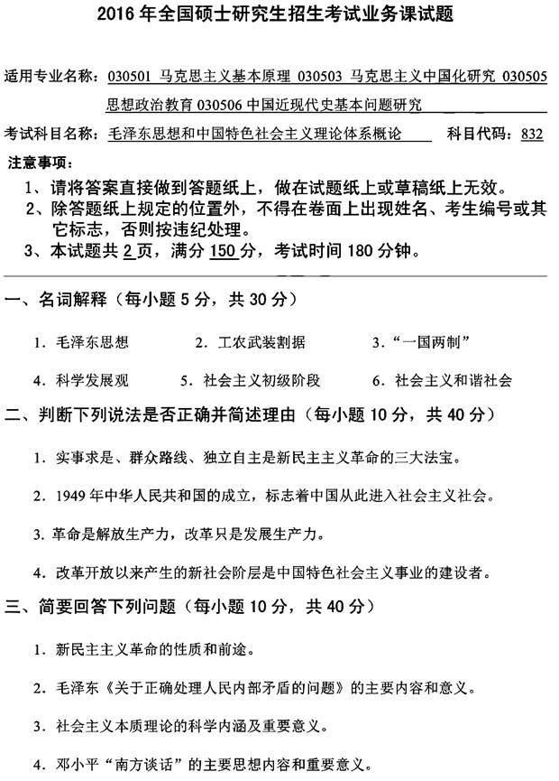 2. 全国名校毛泽东思想和中国特色社会主义理论体系概论考研真题汇总(含部分答案)
