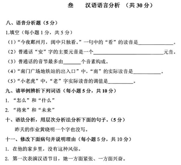 3. 汉语国际教育硕士《354汉语基础》名校考研真题
