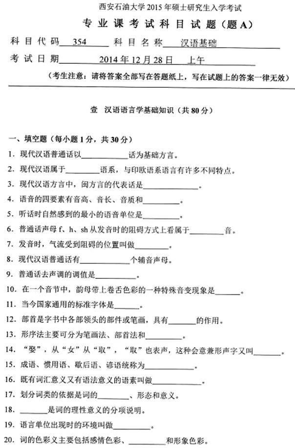 1. 西安石油大学人文学院《354汉语基础》历年考研真题汇总