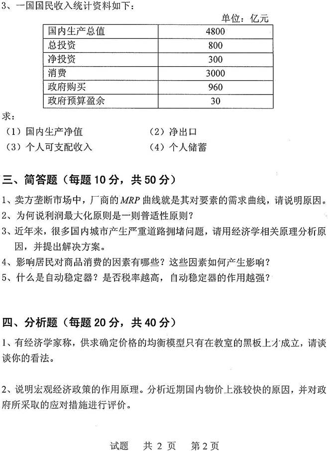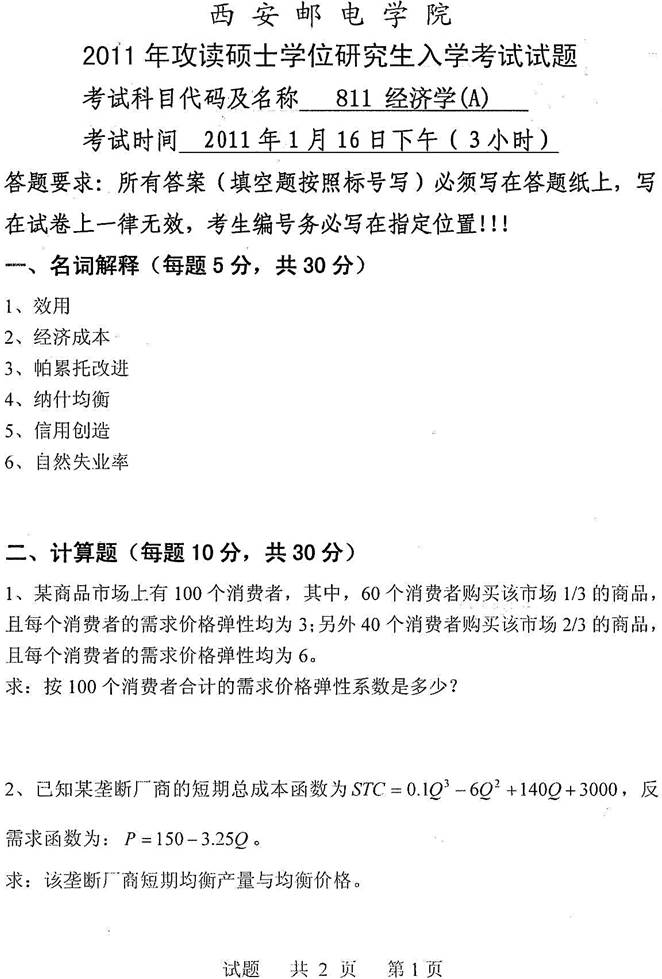 1. 西安邮电大学经济与管理学院《811微观经济学》历年考研真题汇总