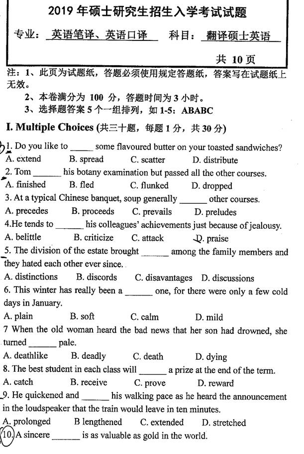 2. [题库]2026年翻译硕士《211翻译硕士英语》考研题库