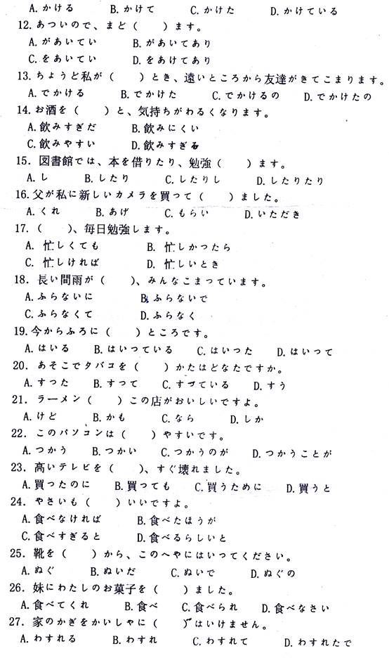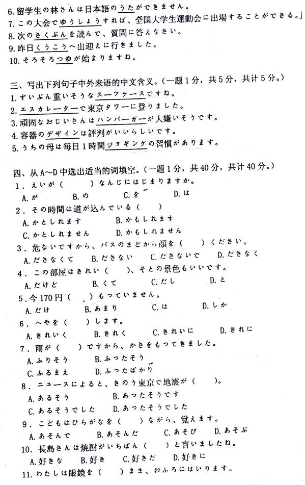 2011年赣南师范大学《241二外(日语)》考研真题