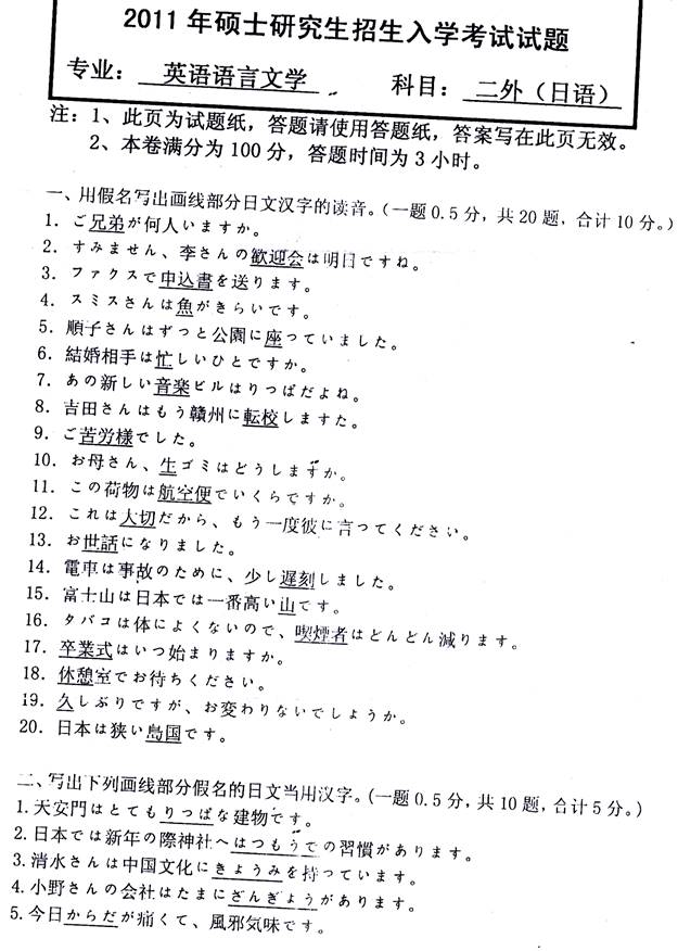 2. 全国名校二外日语考研真题
