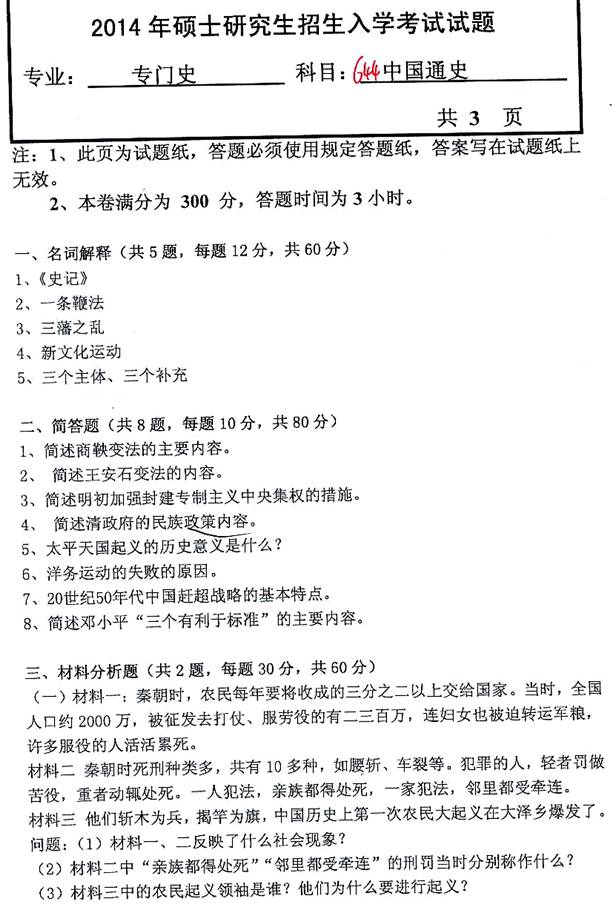 2. 全国名校中国史考研真题汇总(含部分答案)