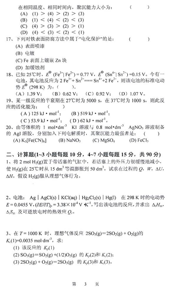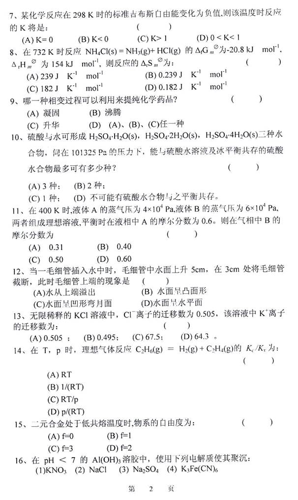 2. 全国名校物理化学考研真题汇总(含部分答案)