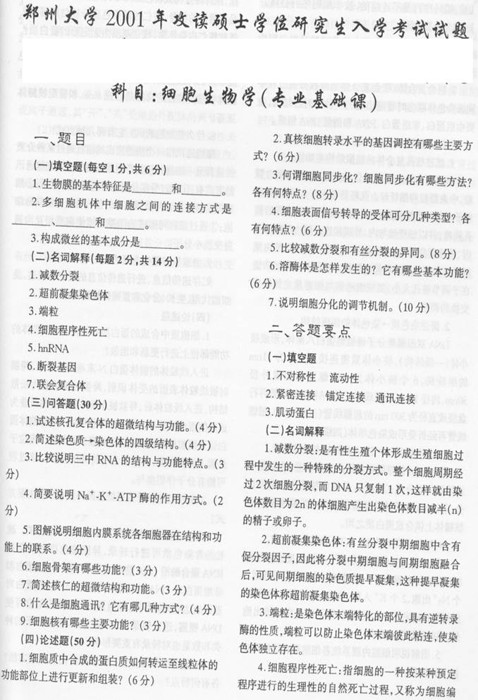 1. 郑州大学《934细胞生物学》历年考研真题汇总(含部分答案)