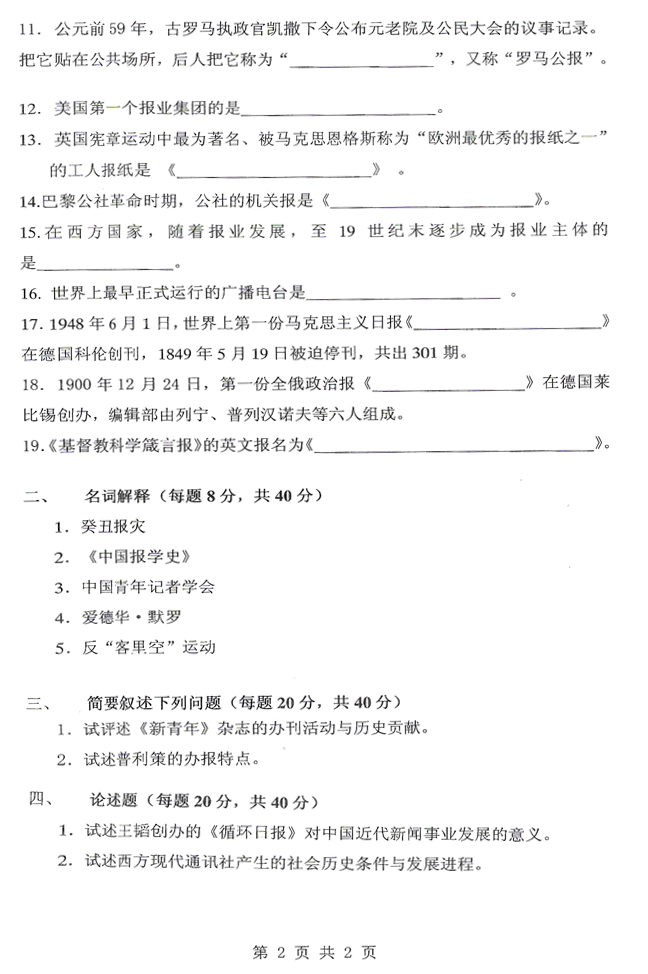 2019年重庆大学新闻学院《634新闻传播史论》考研真题(回忆版)及详解