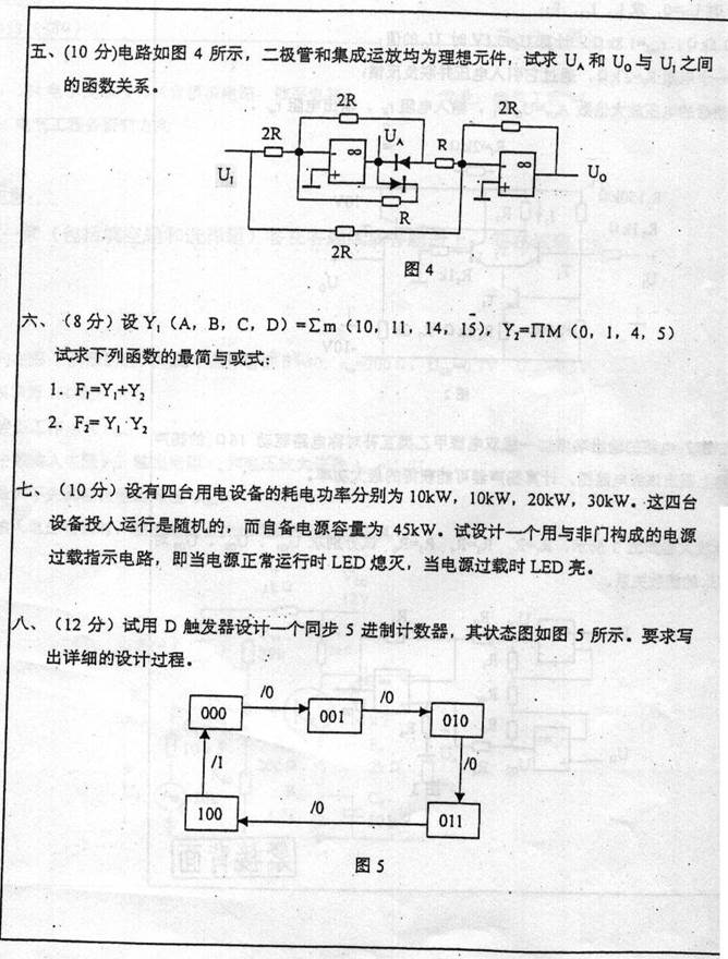 2004年重庆大学474电子技术1(含模拟和数字电子技术)考研真题