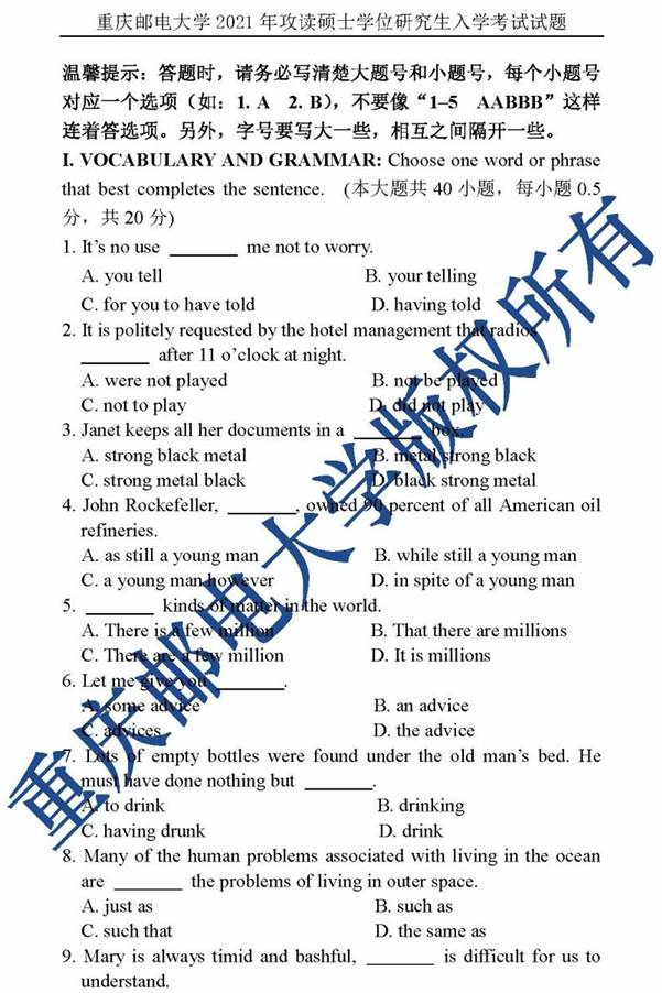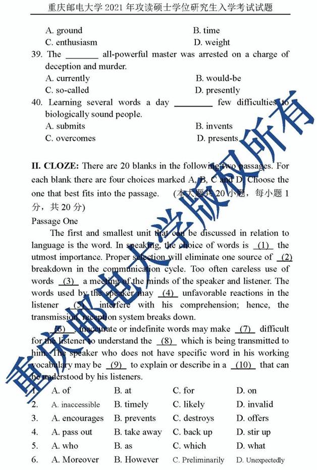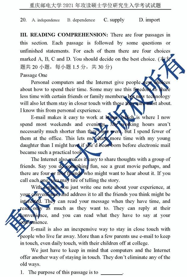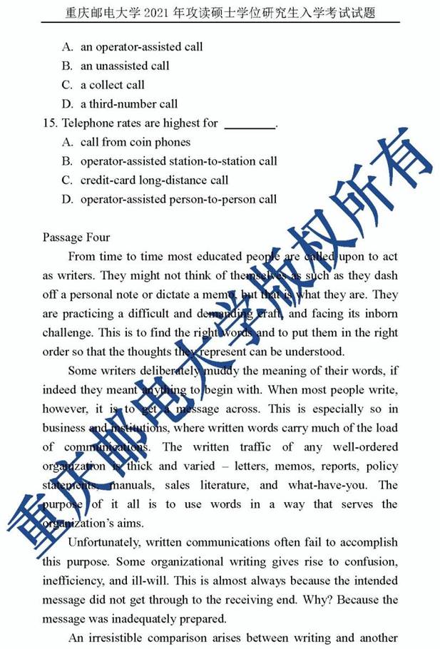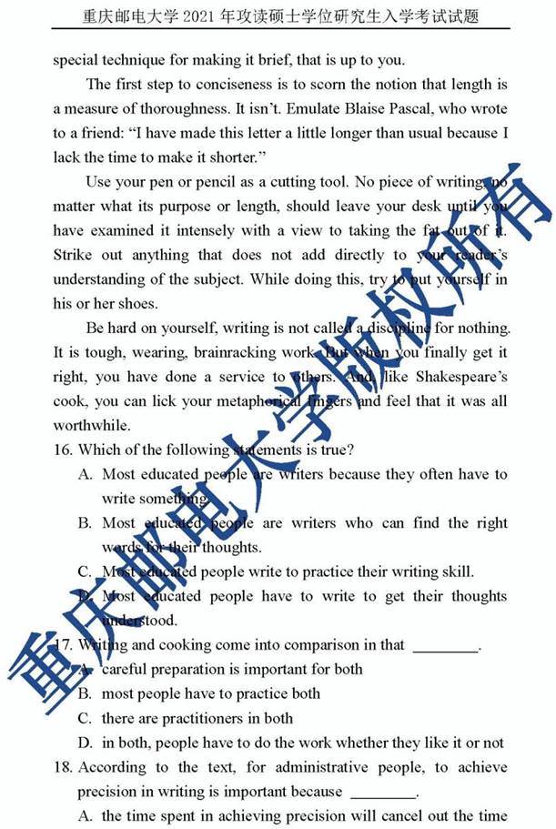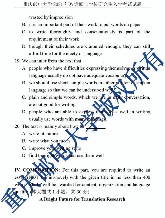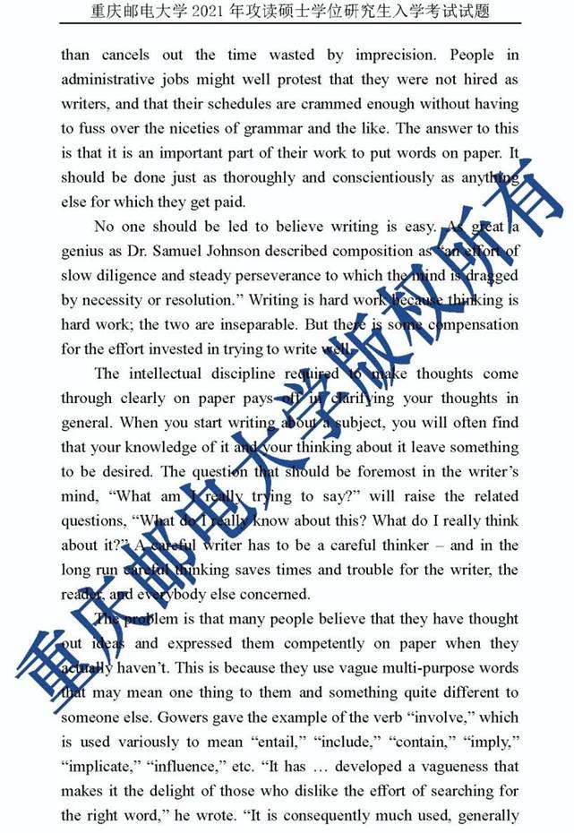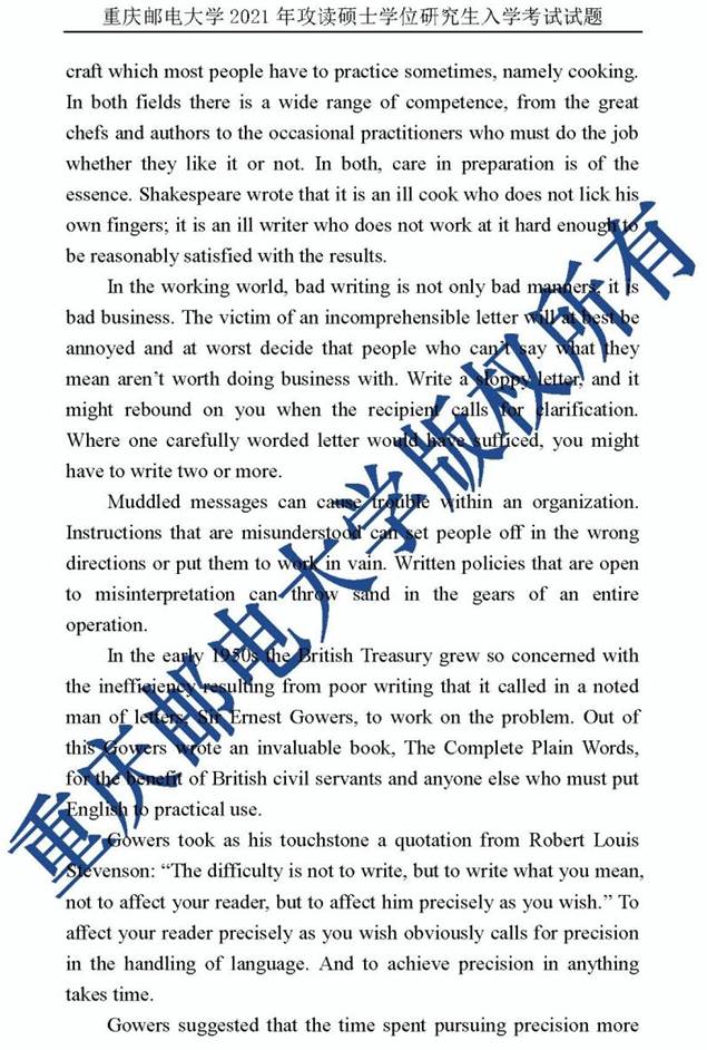 2021年重庆邮电大学《211翻译硕士英语》考研真题