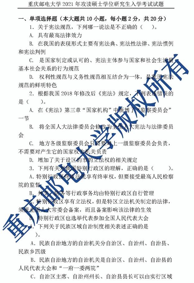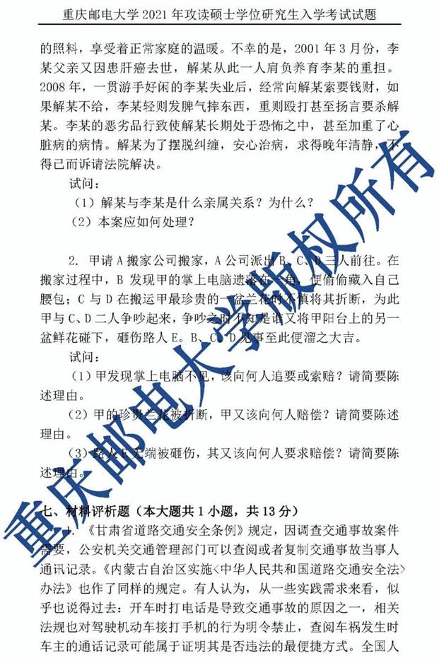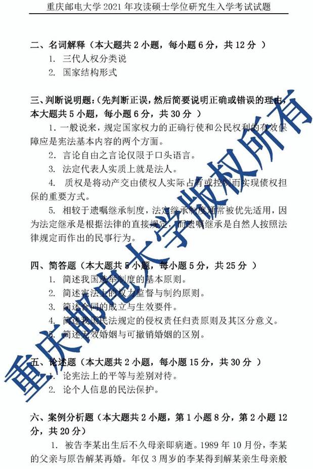 2021年重庆邮电大学《817法律基础(宪法学、民法学)》考研真题