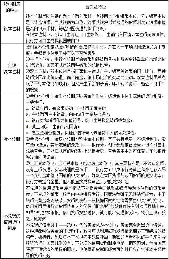 第一节 货币的职能与货币制度