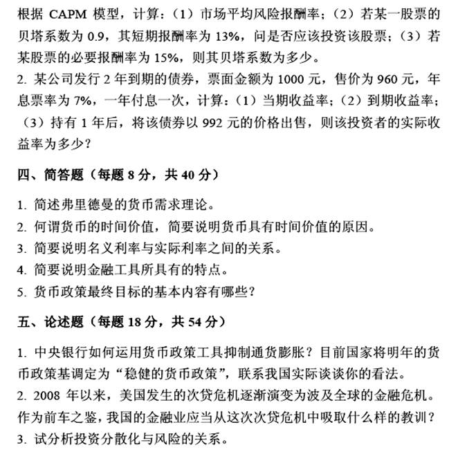 3. 金融硕士《431金融学综合》名校考研真题汇总(含部分答案)(2017年前)