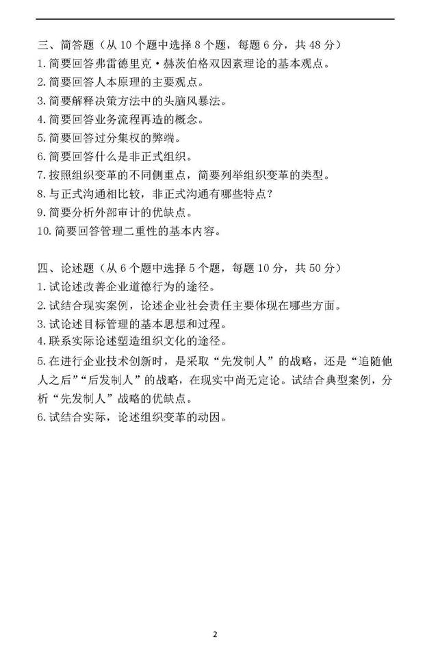 2. 全国名校管理学考研真题汇总