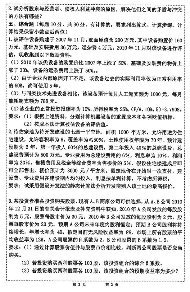 1. [电子书]青岛理工大学商学院《436资产评估专业基础》历年考研真题汇总(含部分答案)