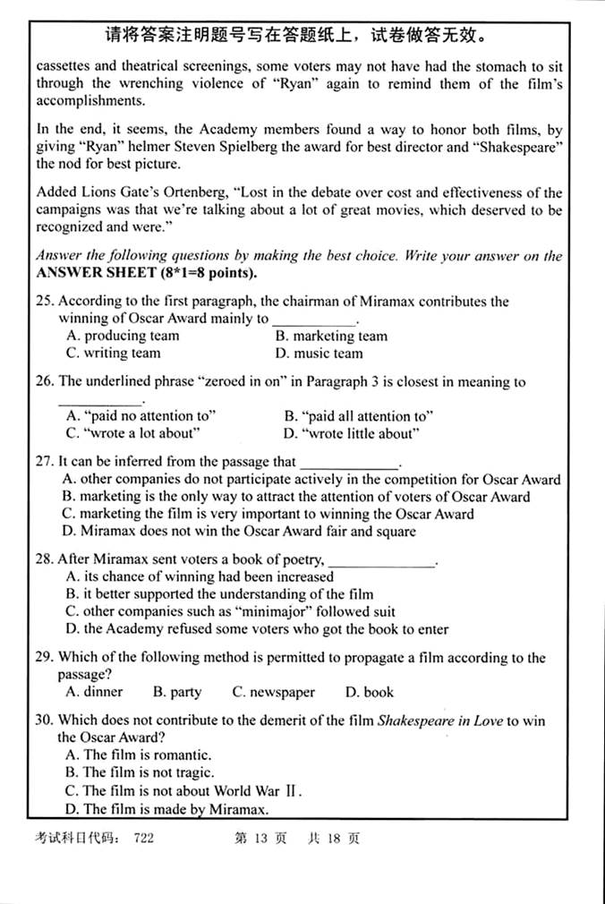 2013年首都师范大学722英语综合水平(词汇、语法、阅读、翻译、写作等)考研真题