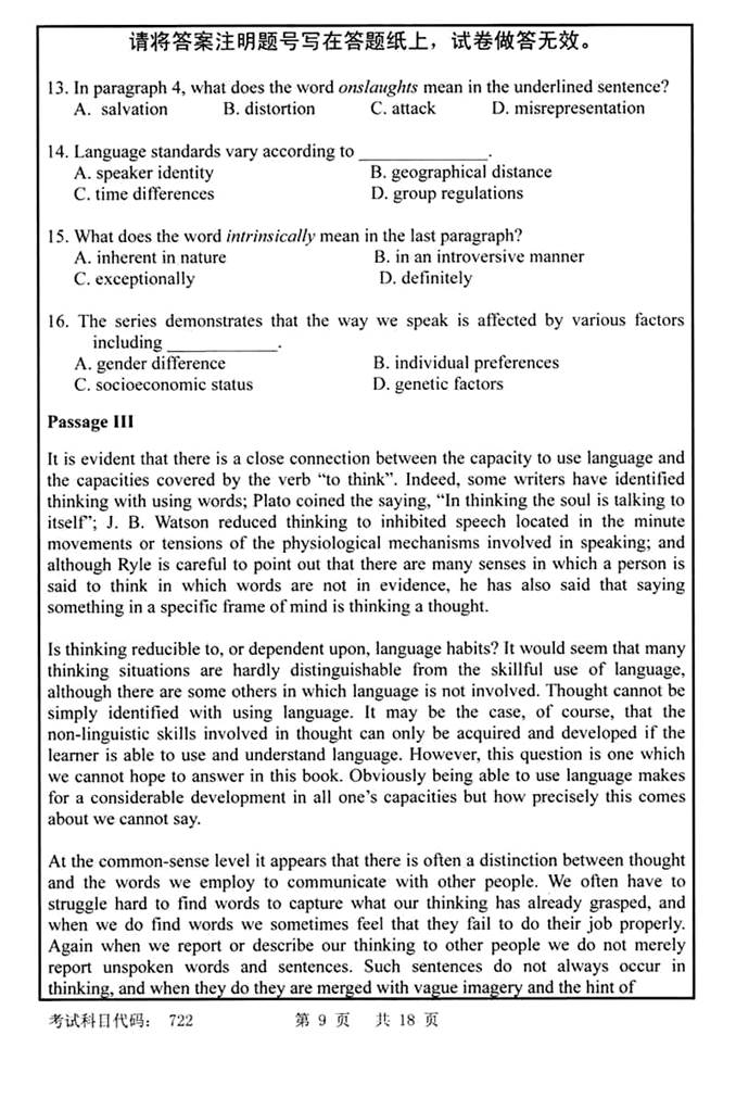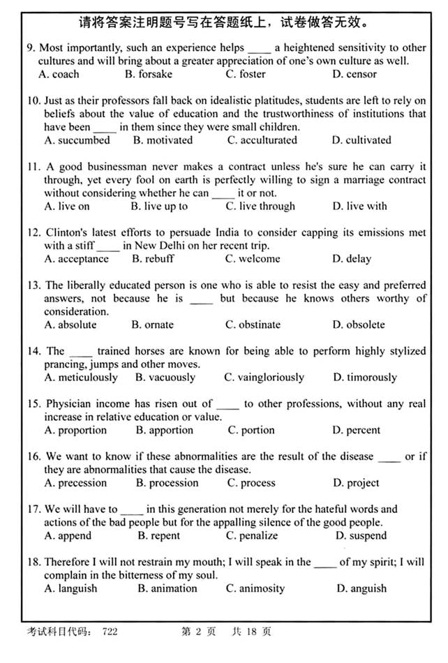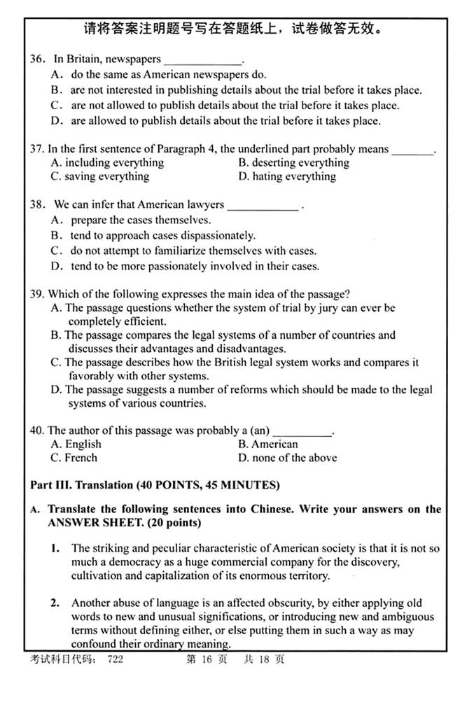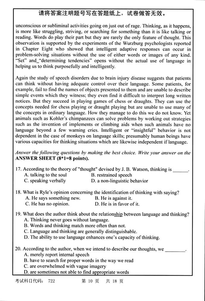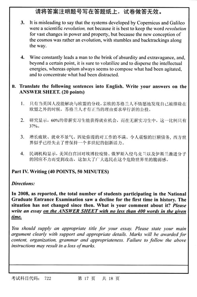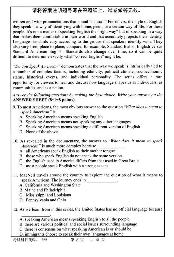 2009年首都师范大学722英语综合水平(词汇、语法、阅读、翻译、写作等)考研真题