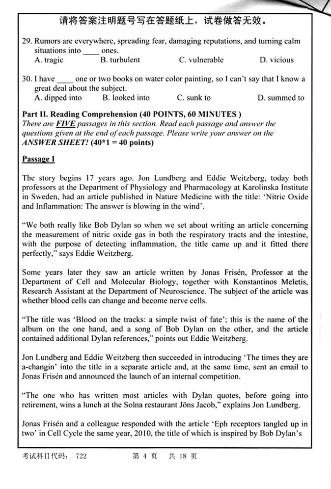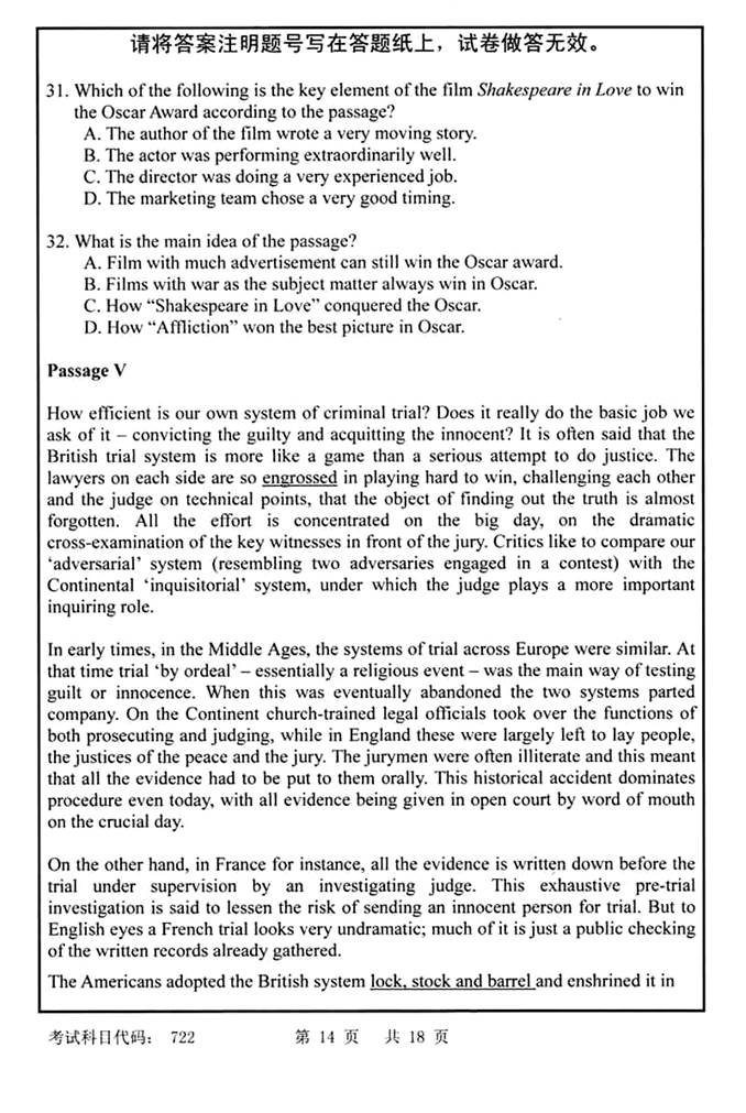 2014年首都师范大学722英语综合水平(词汇、语法、阅读、翻译、写作等)考研真题