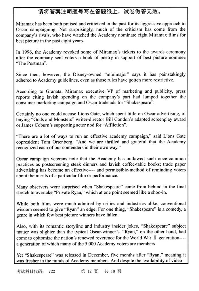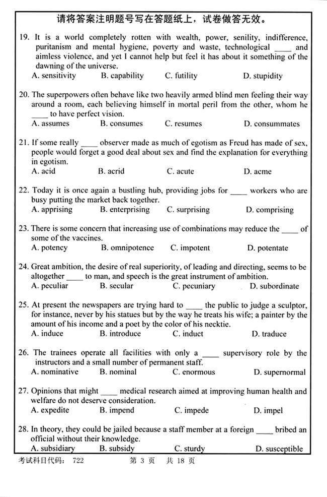 2012年首都师范大学722英语综合水平(词汇、语法、阅读、翻译、写作等)考研真题