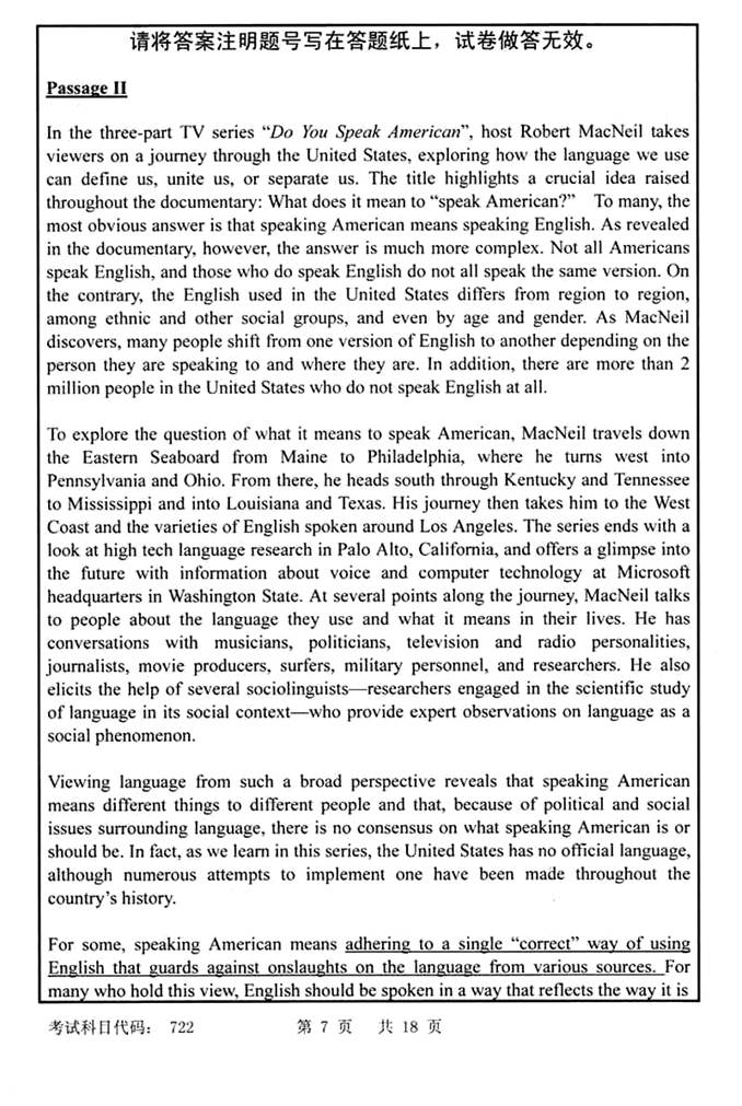 2007年首都师范大学722英语综合水平(词汇、语法、阅读、翻译、写作等)考研真题