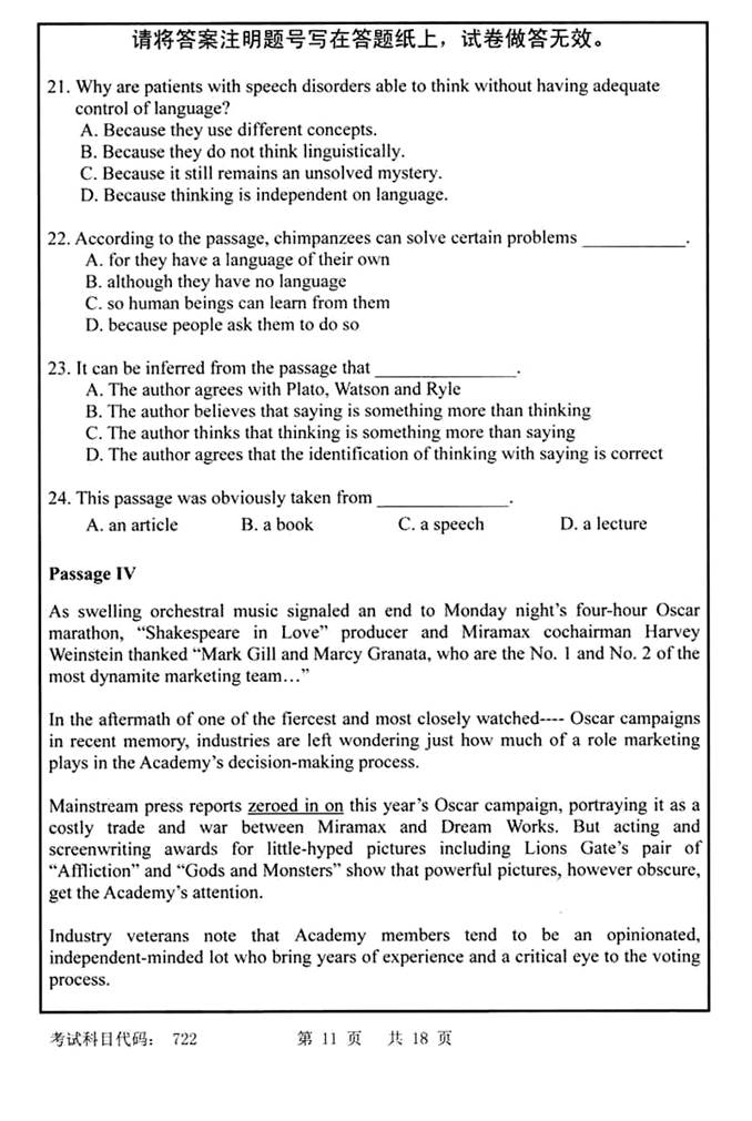 2011年首都师范大学722英语综合水平(词汇、语法、阅读、翻译、写作等)考研真题