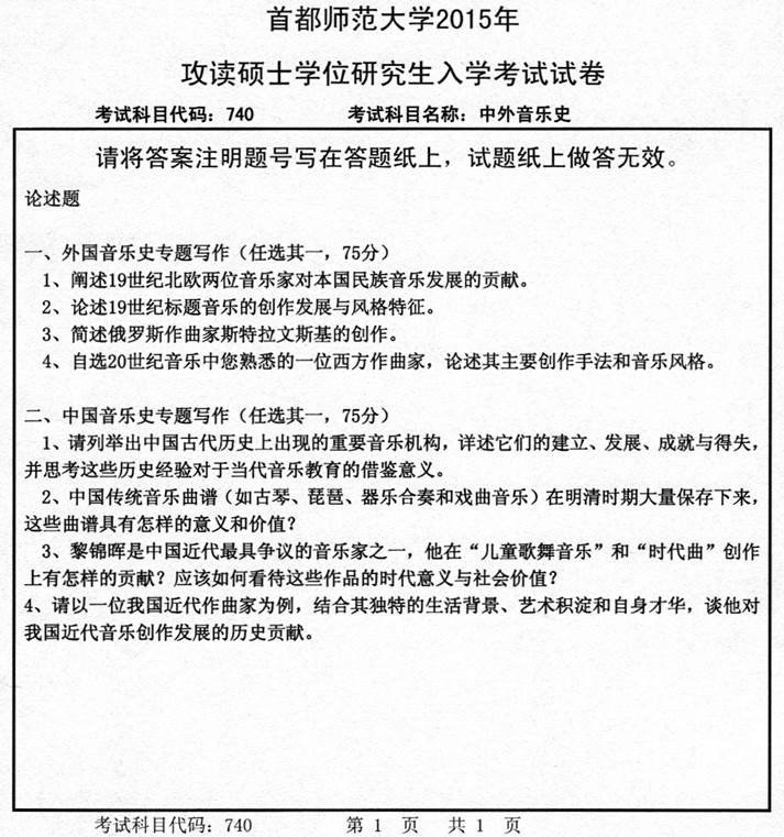 2015年首都师范大学音乐学院740中外音乐史考研真题