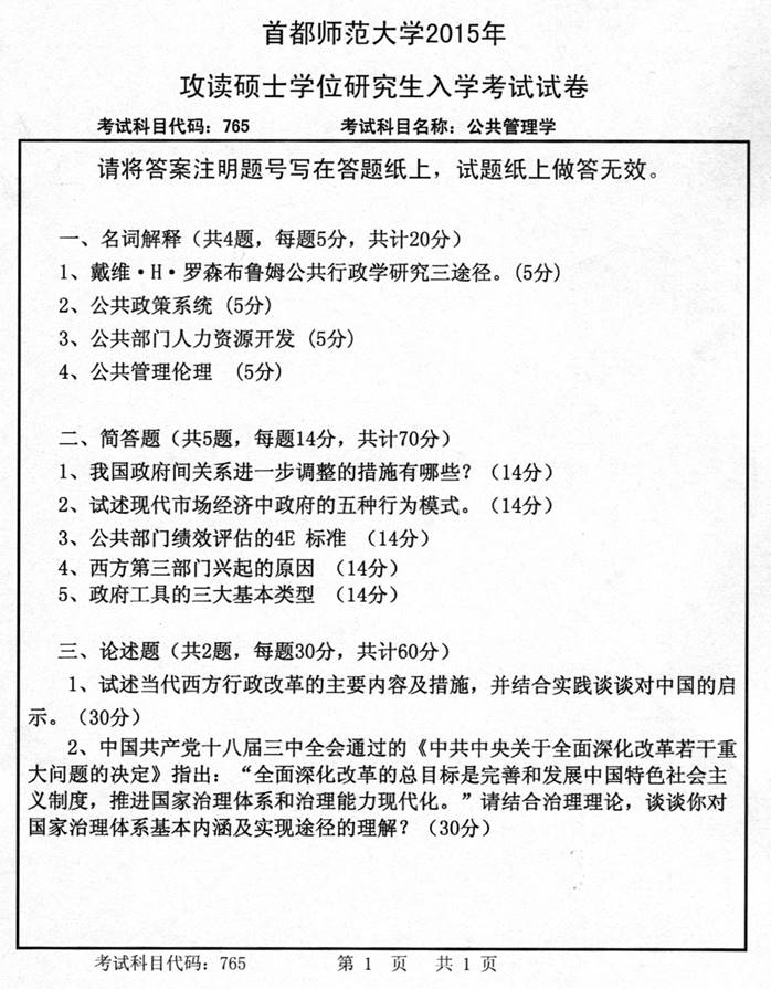 1. 首都师范大学管理学院《765公共管理学》历年考研真题汇总(含部分答案)