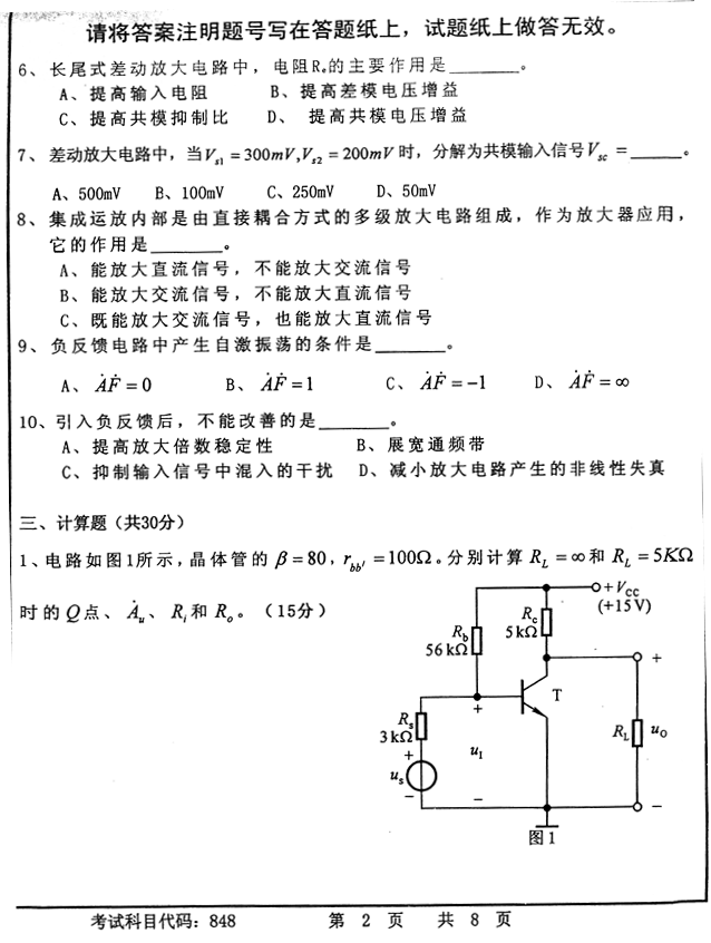 2010年首都师范大学信息工程学院848电子线路考研真题