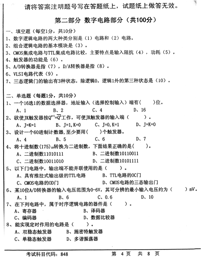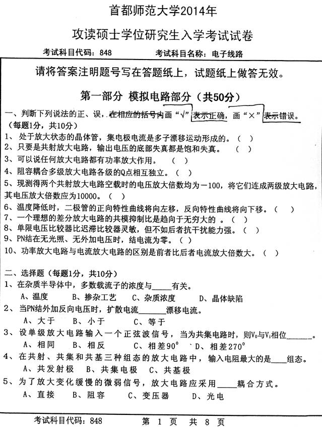 1. 首都师范大学信息工程学院《848电子线路》历年考研真题汇总