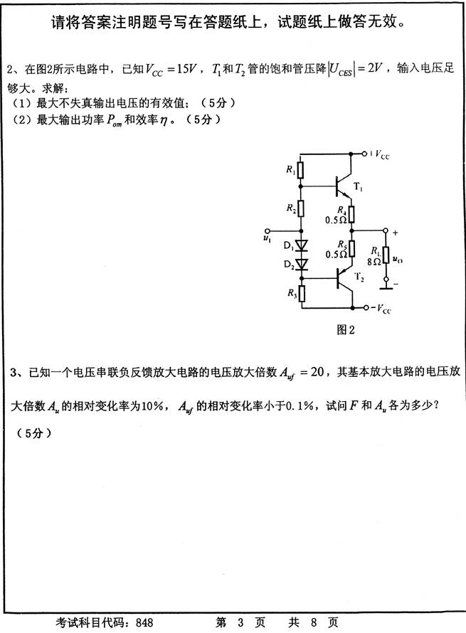 2012年首都师范大学信息工程学院848电子线路考研真题